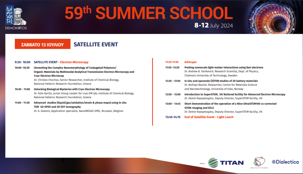 A satellite event on Electron Microscopy will be held on the last day of the 59th Summer SchoolDATE:11-07-2024 Find out more here!