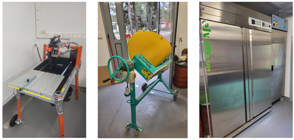 Figure 2. Lab equipment for cutting, mixing and curing of mixtures and specimens.